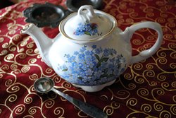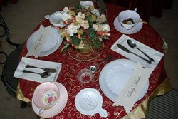 The skirts of Kimberly’s reproduction costume rustled pleasantly as she bustled between tables explaining the place setting which includes a porcelain tea strainer to catch the loose leaves and a tea timer for a perfectly steeped cuppa. Even the paper napkins were embossed the Tea Granny’s logo, as though they were monogrammed linens.