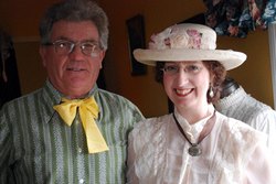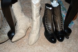 Kimberly and her farmer husband Ivan Allin, both in Victorian costume, both welcomed me to the tearoom situated in their farm home where photos of Ivan’s Victorian ancestors hang on the wall. History buffs like could spend hours poring over Kimberly’s fascinating collection of Victoria artifacts, including these white canvas bathing boots designed to cover ladies ankles and protect their modesty.