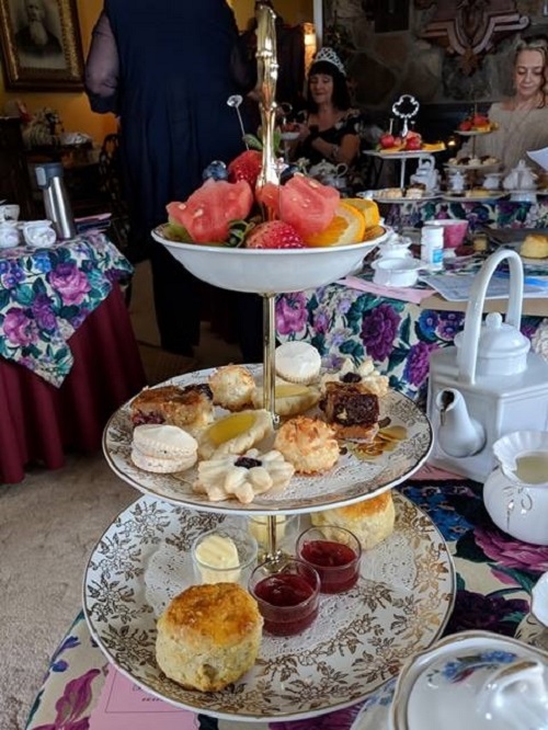 The porch pickup Victorian luncheons to go includes traditional tea sandwiches, with freshly baked scones, seasonal fruits, freshly baked goodies, along with your choice of tea, and a special greeting card if you're sending to a friend.